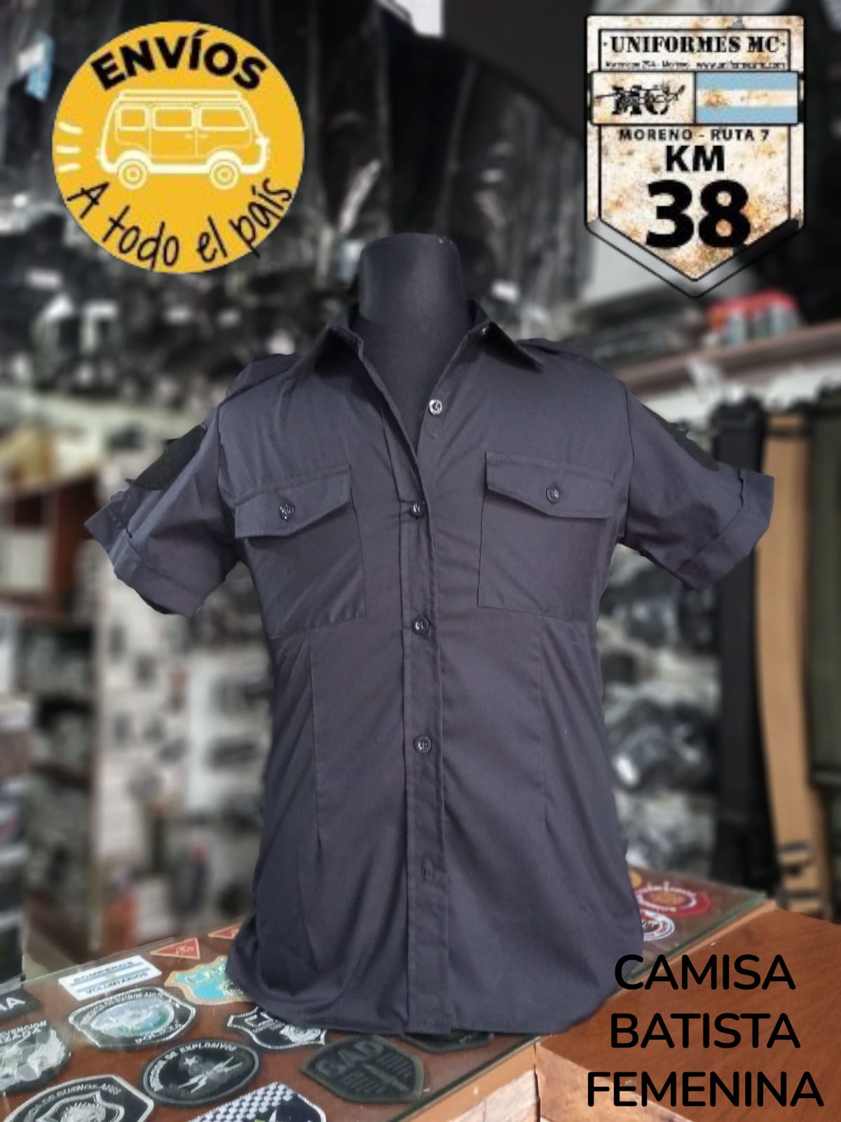 CAMISA AZUL M/C DE BATISTA FEMENINA CON CHARRETERA