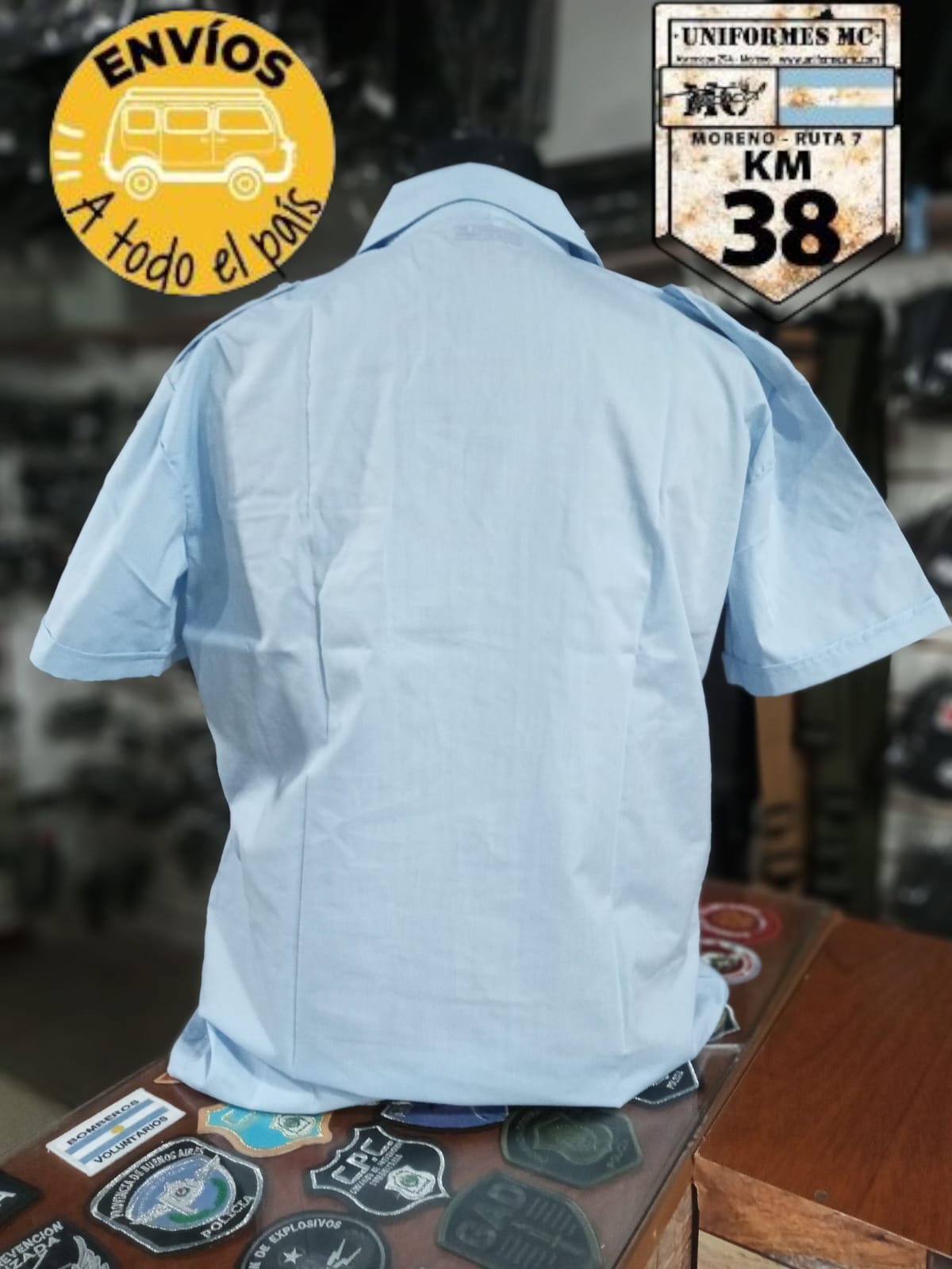 CAMISA CELESTE M/C DE BATISTA CON CHARRETERA