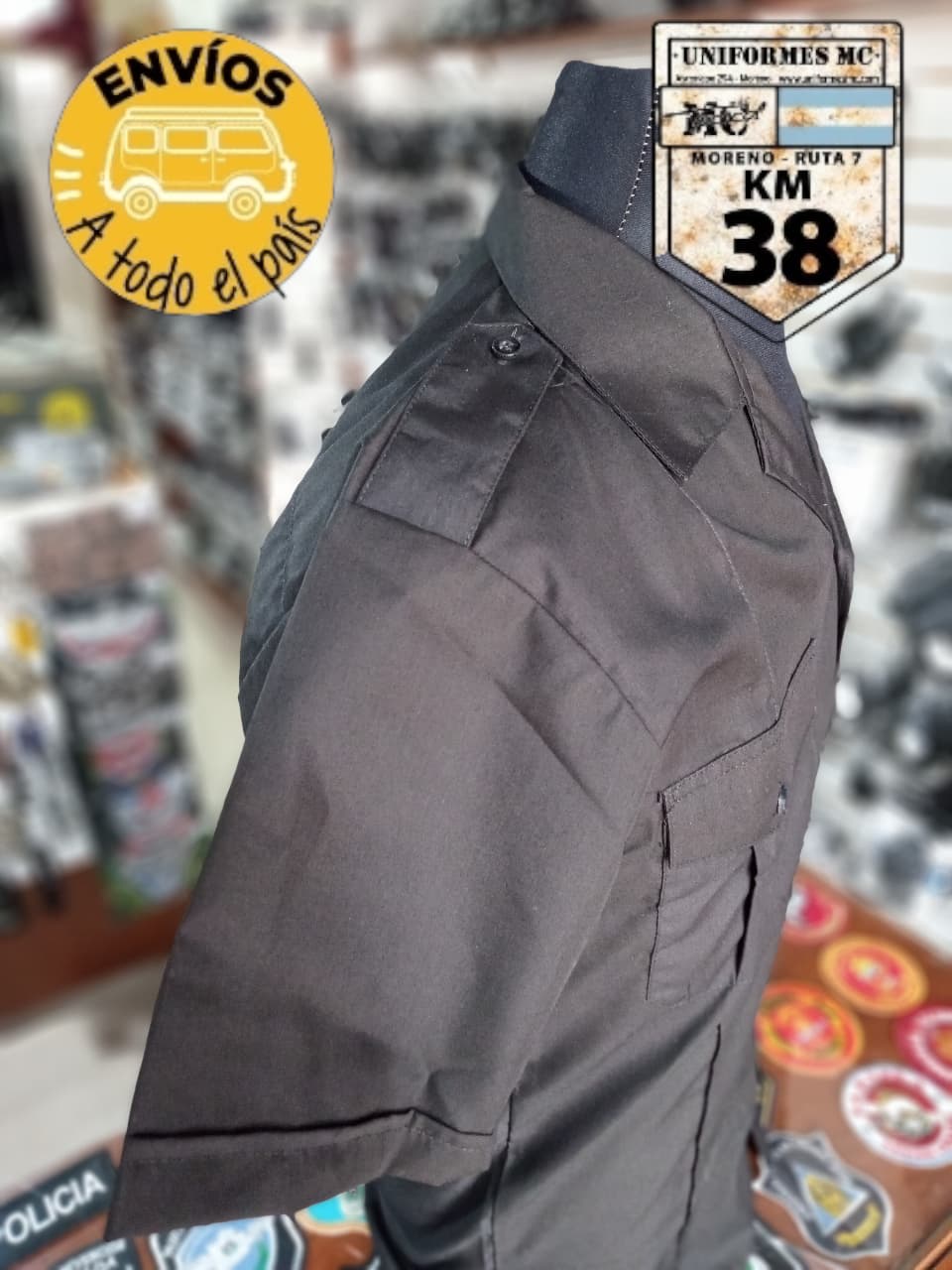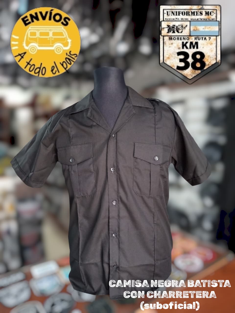 CAMISA NEGRA M/C DE BATISTA CON CHARRETERAS (SUBOFICIAL)