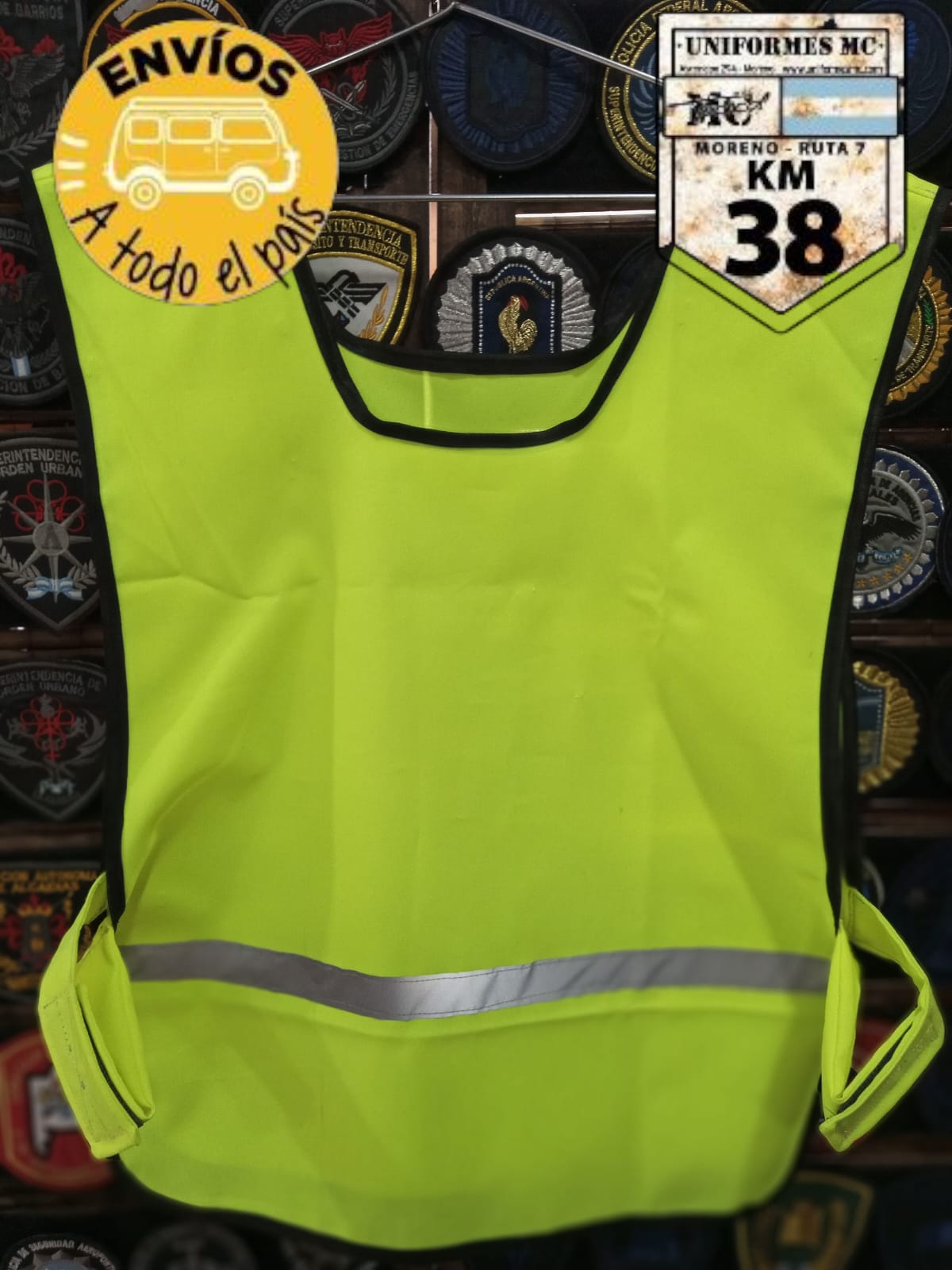 CHALECO AMARILLO TIPO PONCHO, CON CINTA REFLECTIVA, Y ABROJO PARA REGULAR EL TAMAÑO