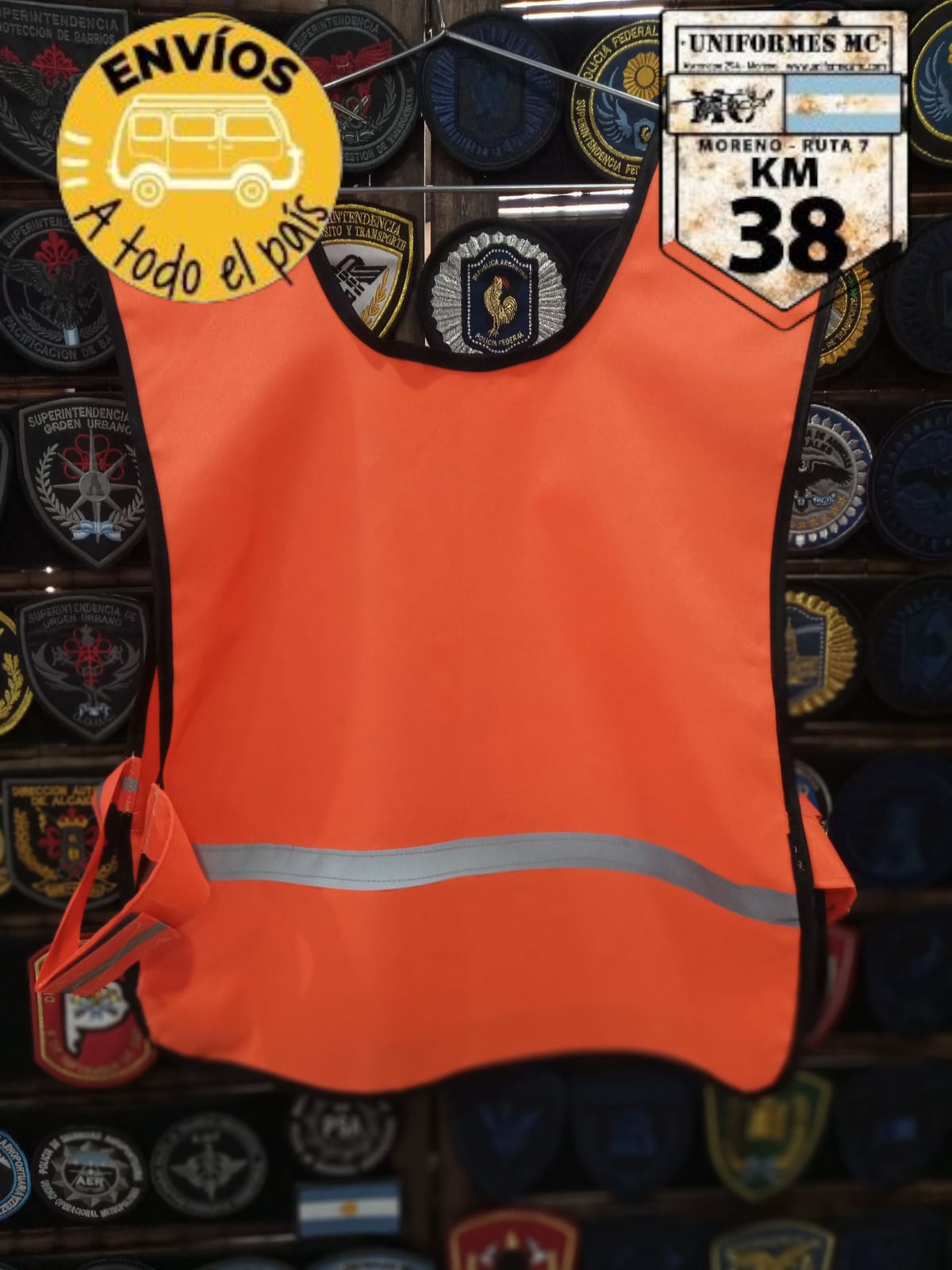 CHALECO NARANJA TIPO PONCHO, CON CINTA REFLECTIVA, Y ABROJO PARA REGULAR EL TAMAÑO
